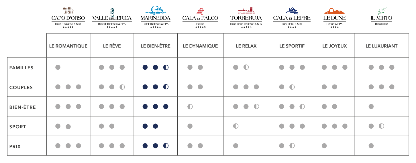 Certaines propriétés permettent de vivre la Sardaigne dans une atmosphère intime et exclusive, d’autres séduisent par leur situation face aux îles, leur spa, leurs services ou leur facilité à rayonner entre plages, excursions en mer et art de vivre local.