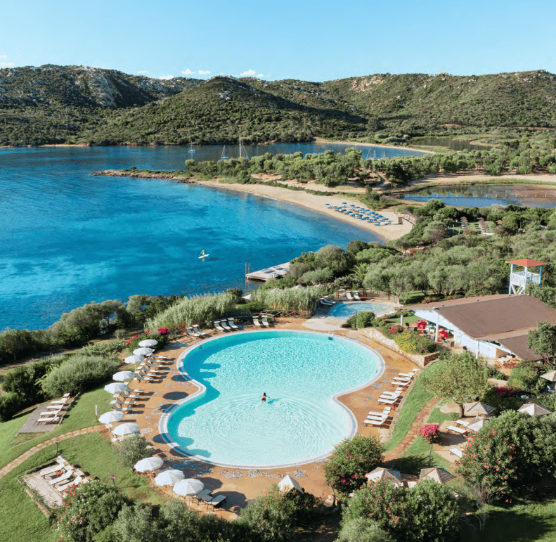 L’hôtel propose 170 chambres et suites réparties entre une zone plus végétale et une zone plus proche de la mer et des services. Son spa Ea Marina, de plus de 1 000 m², ajoute une vraie dimension bien-être au séjour. Mais Cala di Lepre séduit aussi par son énergie : tennis, football à cinq, beach-volley, tir à l’arc, voile, plongée, balades et excursions maritimes dessinent des vacances où l’on profite pleinement du cadre naturel. C’est une adresse particulièrement adaptée aux voyageurs qui n’aiment pas rester immobiles trop longtemps et qui aiment associer détente, mer et activités.